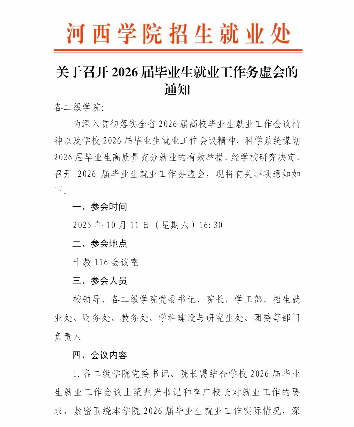 下一条:关于召开河西学院2026届毕业生就业工作启动会议的通知
