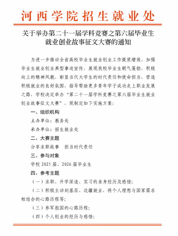 关于举办第二十届学科竞赛之第六届毕业生就业创业故事征文大赛的通知