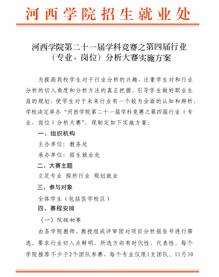 关于举办第二十一届学科竞赛之第四届行业(专业、岗位)分析大赛的通知