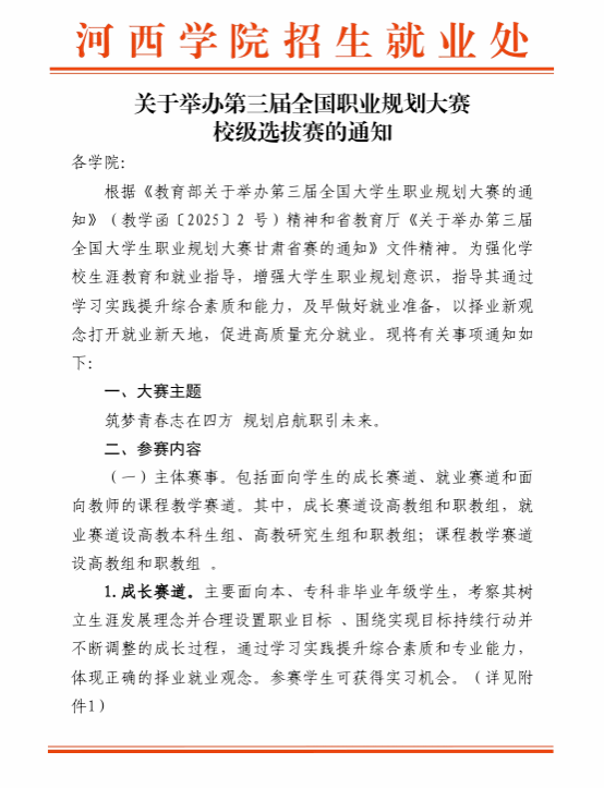 关于举办第三届全国职业规划大赛校级选拔赛的通知