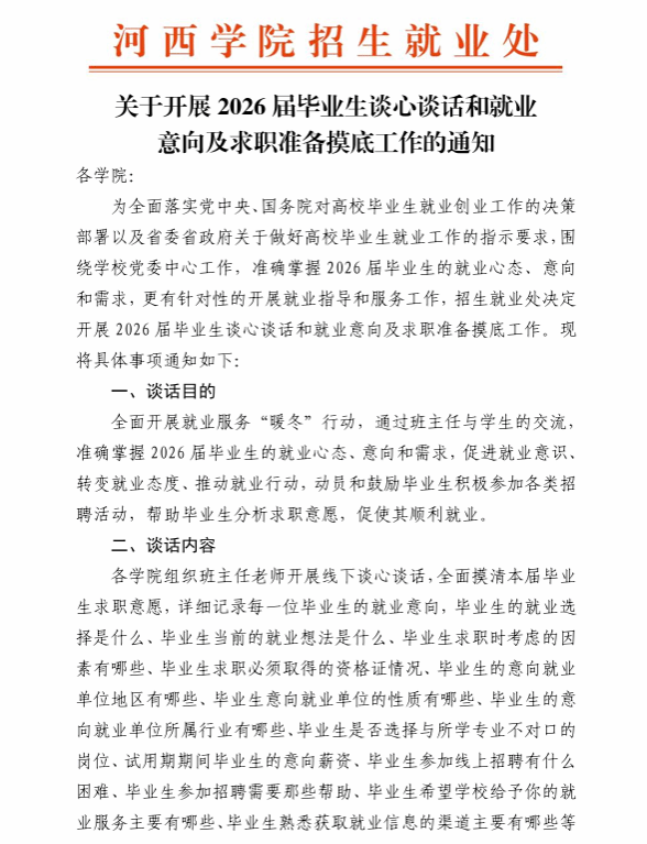 关于开展2026届毕业生谈心谈话和就业意向及求职准备摸底工作的通知