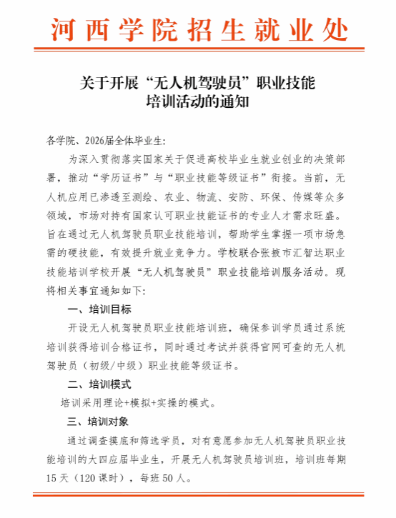 关于开展“无人机驾驶员”职业技能培训服务活动的通知