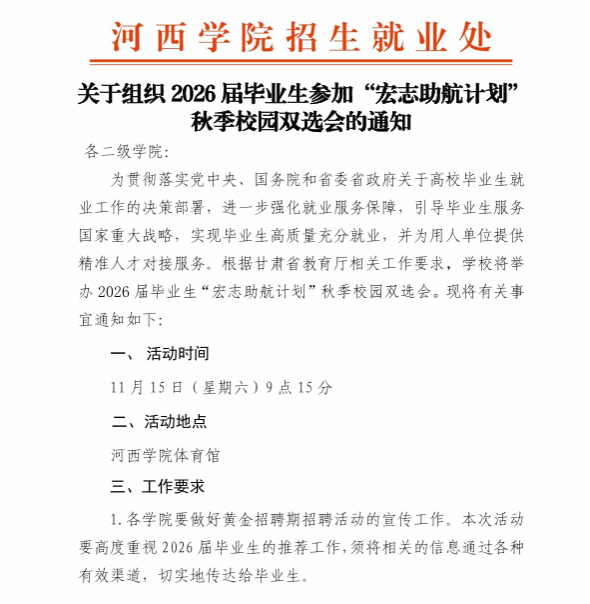 关于组织2026届毕业生参加“宏志助航计划”秋季校园双选会的通知