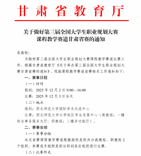 关于做好第三届全国大学生职业规划大赛课程教学赛道甘肃省赛的通知